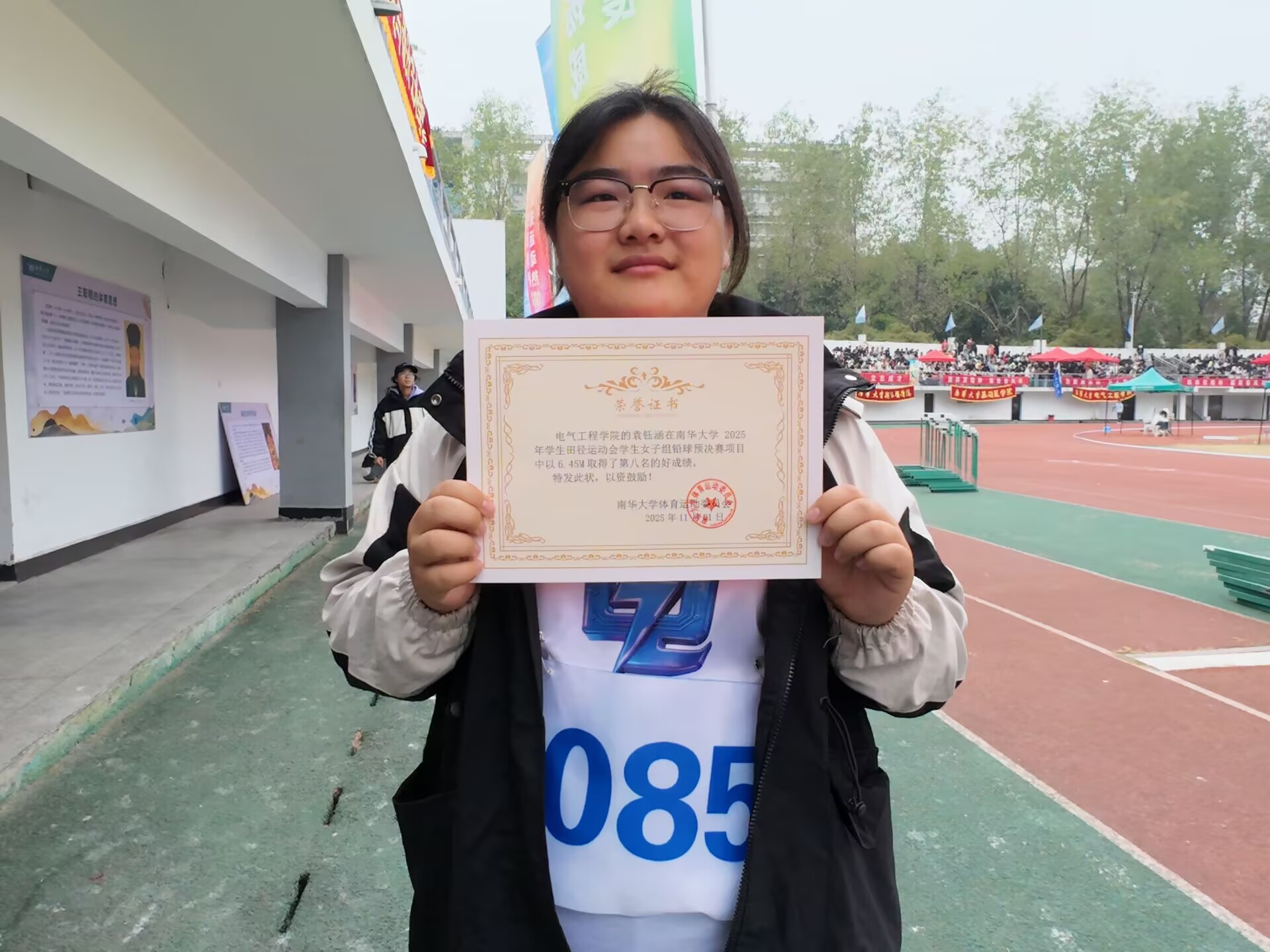 在男子400米预赛中,雷湘秦同学凭借出色的爆发力以小组第七的佳绩闯进决赛。随后,在男子4×100米接力赛预赛以及女子4×100接力赛预赛中,我们两支代表队凭借默契的配合分别斩获第六名和第五名的优异成绩,成功晋级决赛。田赛赛场同样捷报频传。在女子铅球预决赛中,袁钰涵同学稳定发挥,勇夺第八名。