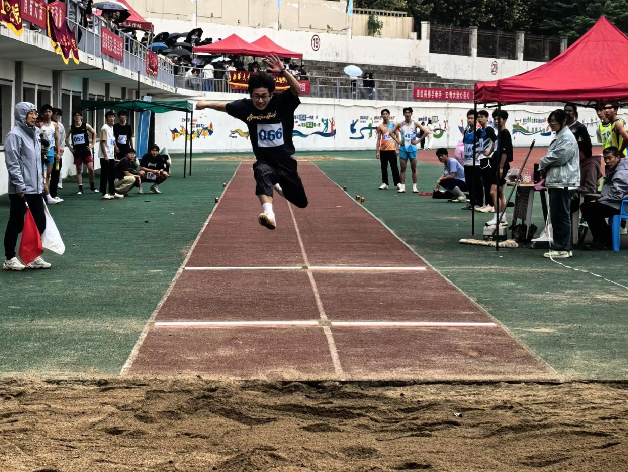 在个人项目方面,胡炜彬同学在男子5000米项目中荣获第二名;李婷娴同学在女子5000米项目决赛中荣获第八名。雷湘秦同学在男子400米项目决赛中荣获第七名。此外,在田赛项目中,涂轩昊同学在标枪比赛中荣获第五名;胡方志同学在男子跳远比赛中荣获第三名;袁钰涵同学在女子铅球项目预决赛中荣获第八名。特别是在三级跳远赛场上,胡方志同学以12.51米的优异成绩,打破了保持4年的校运会纪录,夺得该项目冠军!