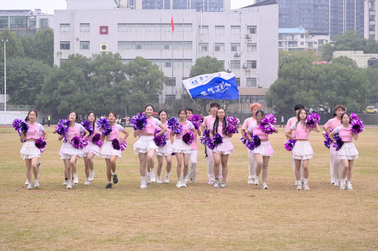 比赛期间,学院啦啦队用青春洋溢的表演为赛场注入活力,观众席上电气学子挥舞院旗、齐声呐喊,热烈的加油声响彻全场,形成了独特的“电气助威阵线”,成为展现电气人团结风采的亮丽风景。